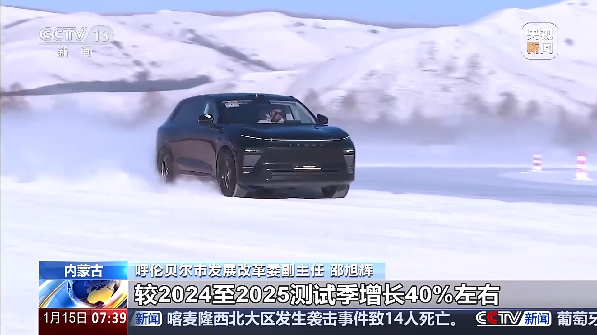 呼伦贝尔市牙克石高新技术产业开发区服务中心副主任 韩铁峰:我们持续完善硬件设施建设,高标准建成5个专业测试冰面,修筑47公里抗疲劳环山公路,满足多样化测试场景需求。特别是近5年,牙克石冬季汽车测试产业全国市场占有率从不足10%跃升至40%以上,营业收入年增长率稳定保持20%。